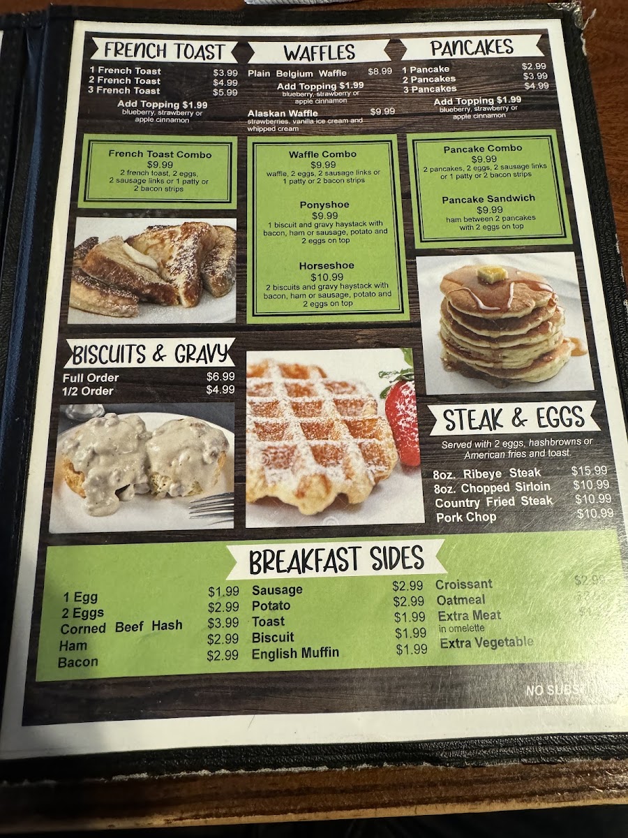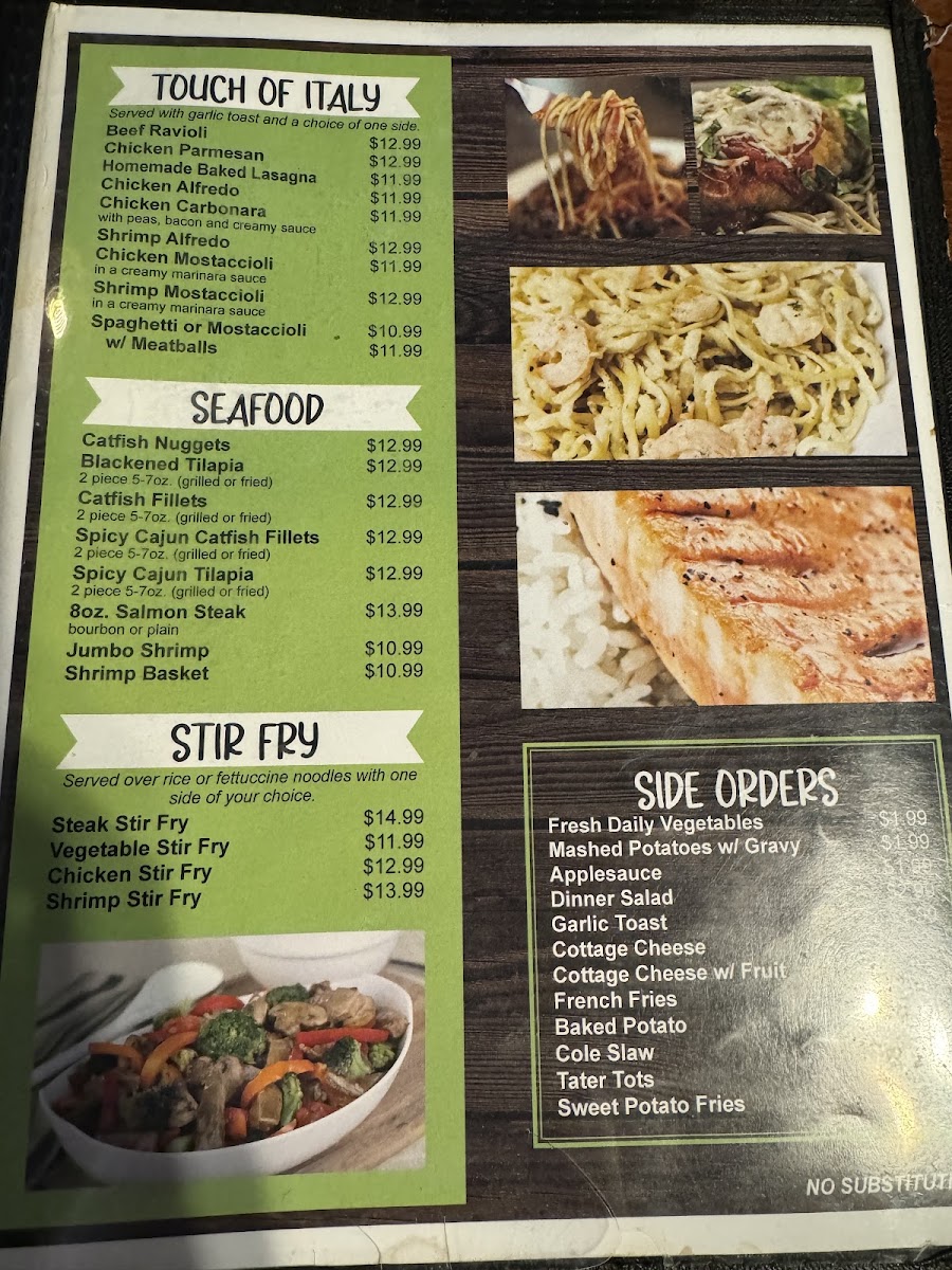 Many visitors enjoy starting their day here with the simple pleasures of two eggs served any style, accompanied by choice potatoes and toast, or savoring a well-stocked breakfast buffet that highlights popular favorites like biscuits and gravy with sausage. Later in the day, the menu’s comforting dinners reflect the restaurant’s down-to-earth atmosphere, offering satisfying meals designed to evoke a sense of home.