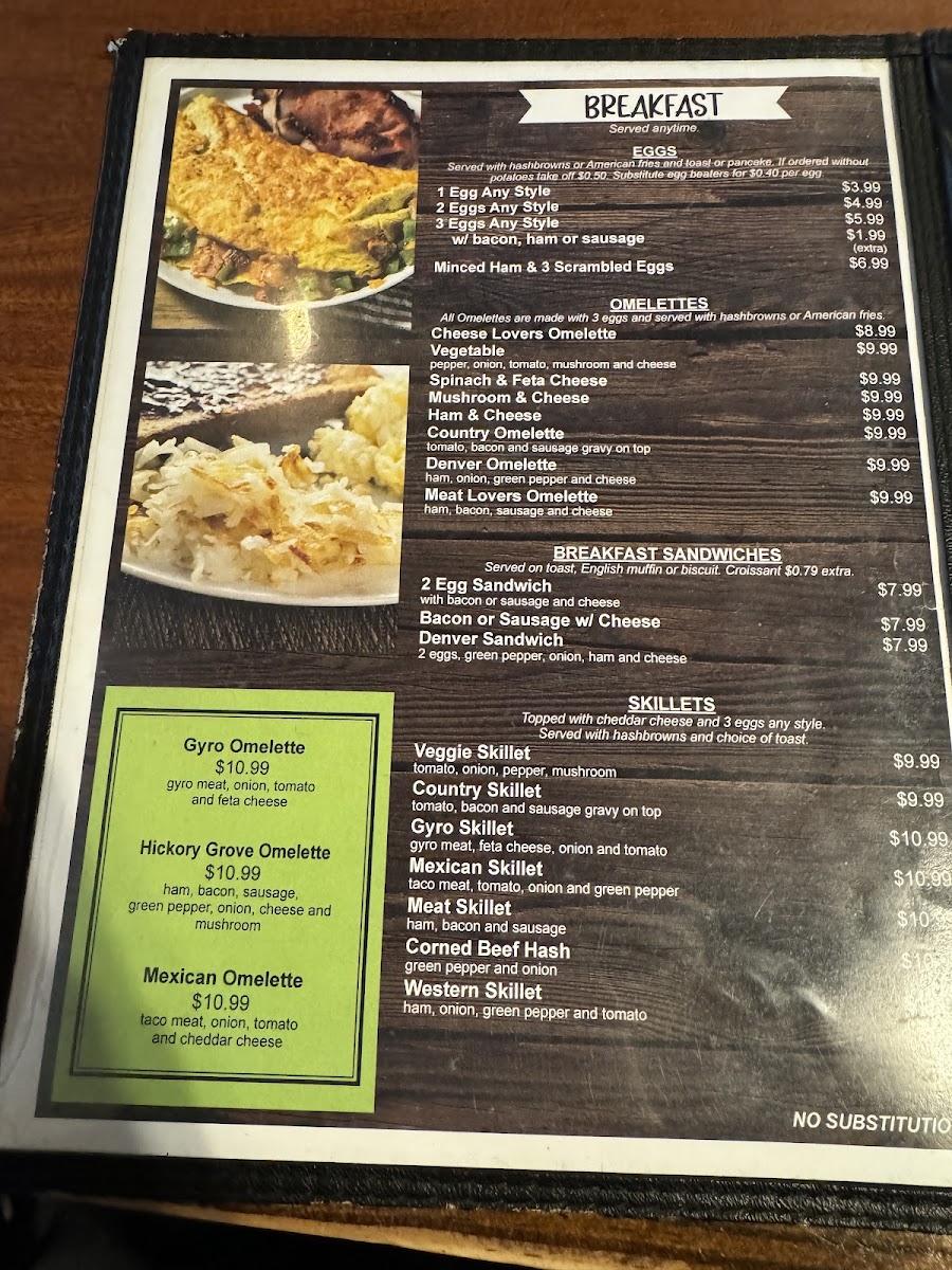 Hickory Grove Restaurant Menu